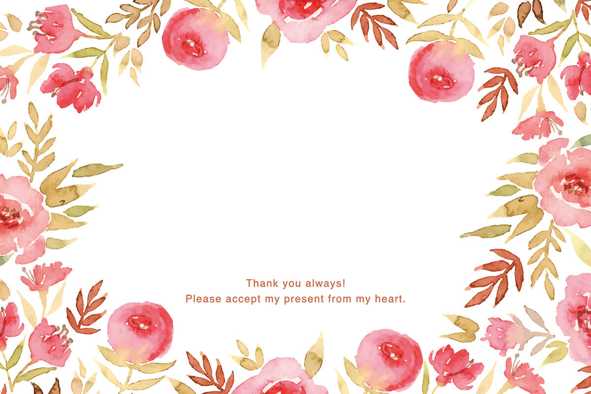 例) ★メッセージカード種類:【赤系フリー】 ★メッセージはこちら:【ありがとうございます。これからも宜しくね。】(絵文字不可・25文字程度)