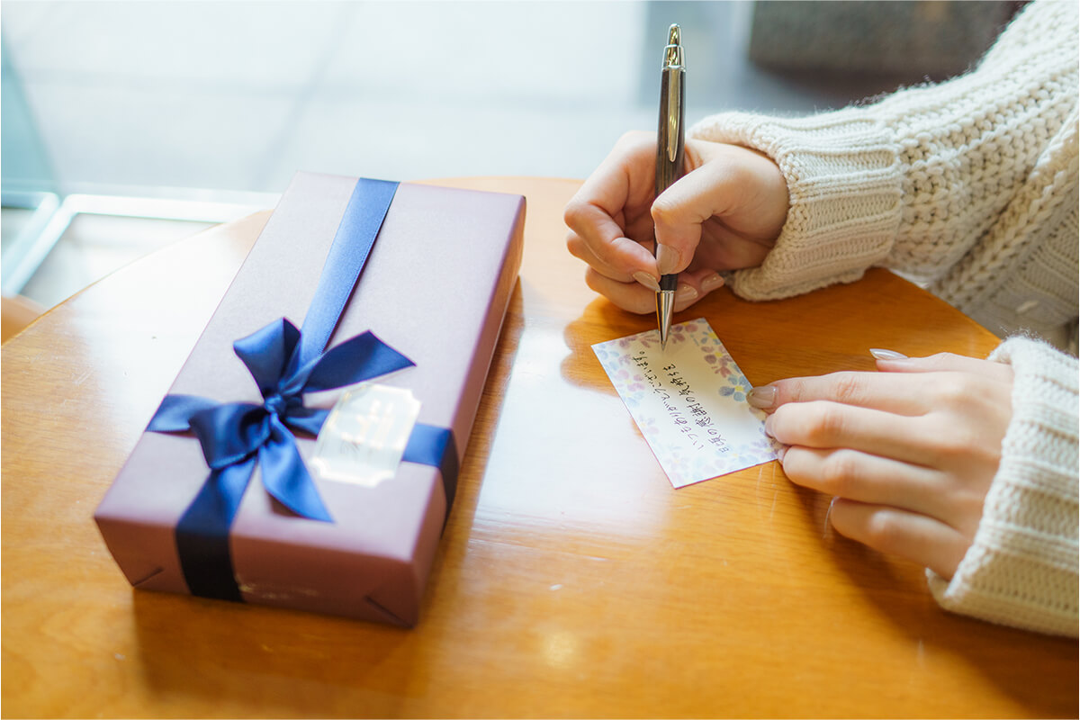 当店では、無料でメッセージカードサービスを承っております。 一点一点、スタッフが心を込めて手書きでお書きします。 メッセージの内容は、注文画面の備考欄にてお気軽にお申し付けください。 ラッピングご希望の際は、別途ラッピングも注文時にご指定ください。